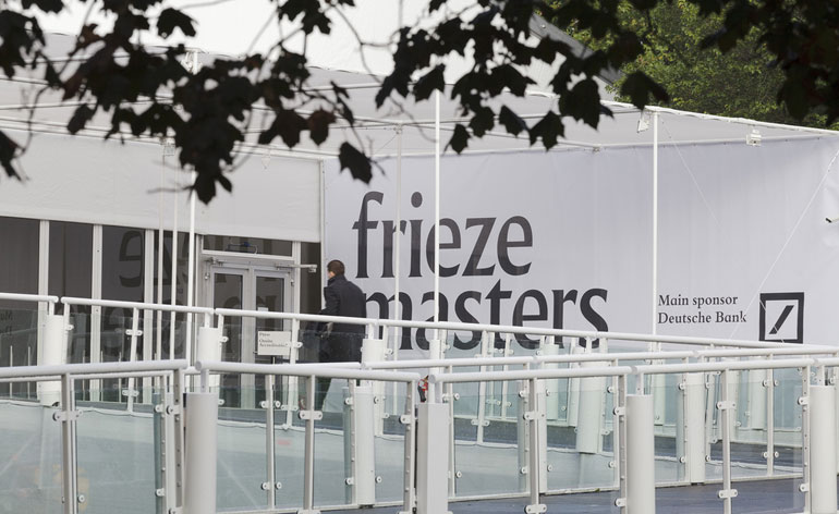 If it were even microscopically aimed at a public audience there would be wall descriptions of the work in order to gain some knowledge of the work and the artist. There are curators to talk with, yet they appear bias, in that once they realise you are not interested in buying, they will in turn flee, leaving to talk with the next person. Even so, their role is not to enlighten you on the concepts of the work or the history of the artist, but to sell it to you, making their demeanour completely different to that of a curator in an institutional setting. A museum’s original role is to produce research and distribute and publicise knowledge for a wide audience. You could describe Frieze as a ‘Kunsthallen’, a temporary exhibition space, but even this category does not fit. Its function is simply to show gallerists recent signings and profitable works.