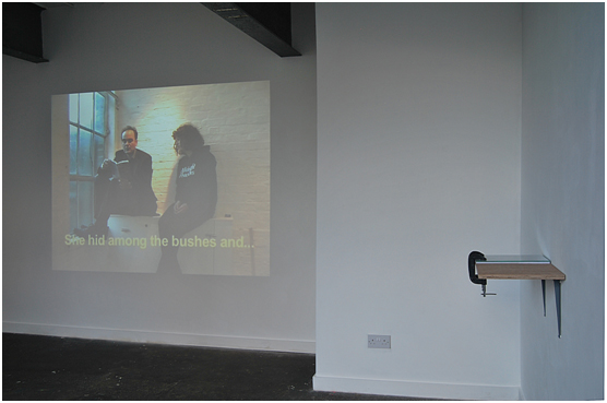 Figure 1: Cruz, J. (2009). Translating: Chapter Two [Video Installation, Sculptural text work]. Crate, Margate. Commissioned for Bad Translations, Curated by Matthew de Pullford http://www.cratespace.co.uk/