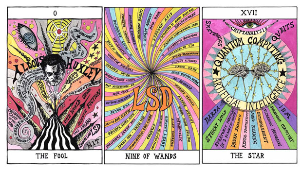 0 THE FOOL (Aldous Huxley), NINE OF WANDS (LSD), XVII THE STAR (Quantum Computing – AI), Hexen 2.0, 2009, Suzanne Treister