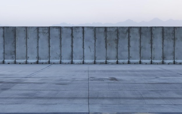 The base is dominated by the blue hills of the Hindu Kush Mountains, a view depicted in my favourite image of the exhibition – an imposing concrete wall confronting the viewer face-on, and the softly-dominating mountains behind. Looking at this photograph, I felt like I was gazing at an old master painting; in the richness and delicacy of the blue tones of the concrete – almost velveteen in appearance. The faint mountains only add to the strange abstraction of the image, so serene and so beautiful, yet hiding deeper narratives, secrets and fears. These are the ‘blue hills of memory’ which crop up again and again in art history (think Leonardo Da Vinci’s Virgin on the Rocks, or Giovanni Bellini’s Madonna and Child), and all-throughout Clark’s photographs.