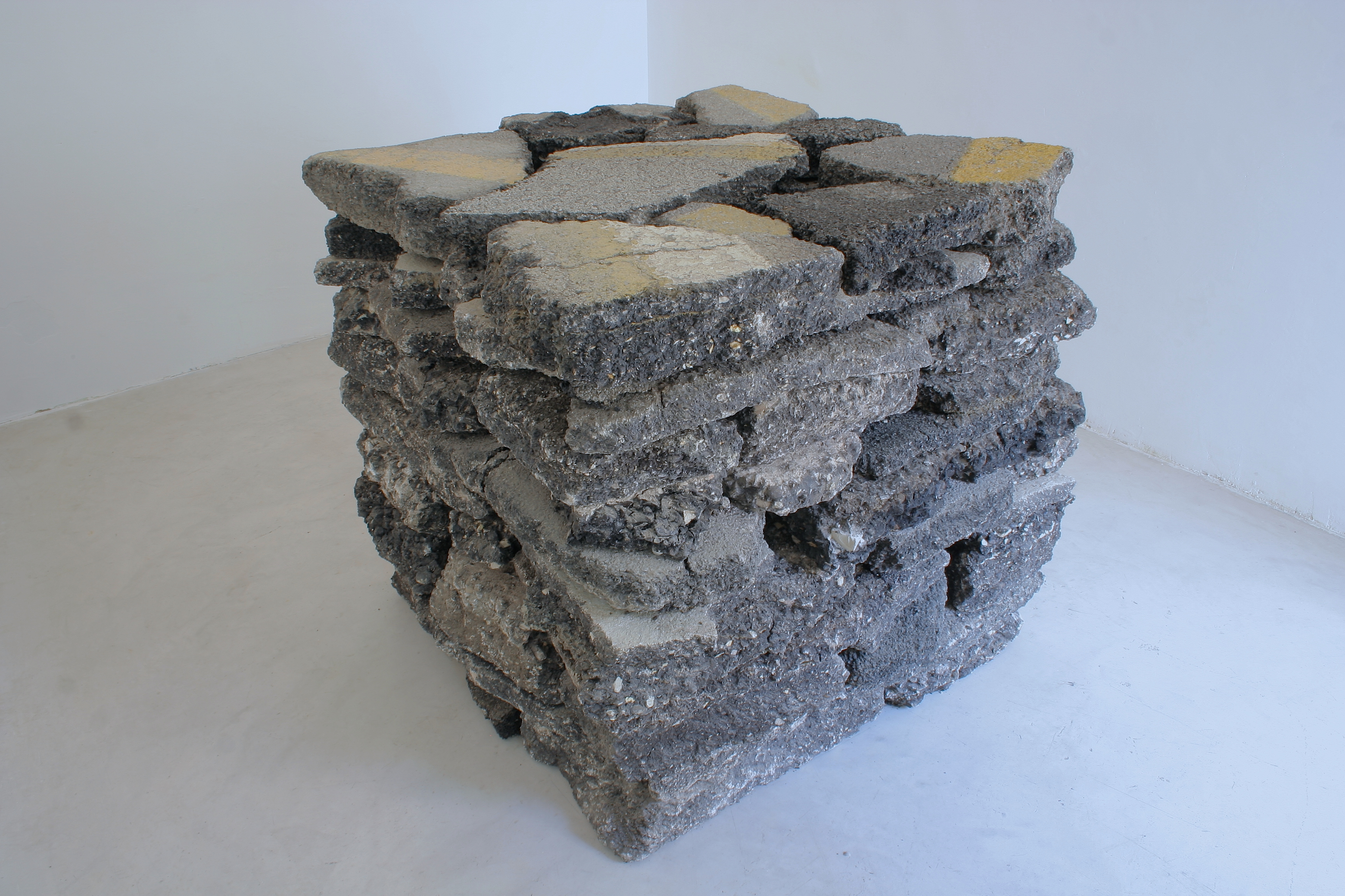 Externum Historia asphalt, 100x100x100 cm view at the exhibition Externum Historia at FARM CULTURAL PARK, Favara (AG) private collection, Roma 2011