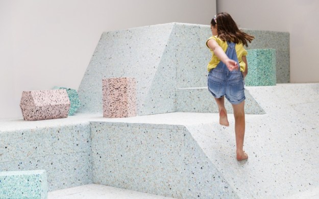A sense of possibility is introduced into Henderson’s scenes when they are foregrounded by his shots of children at play, boys on bikes and girls doing hopscotch in the street. Informed by Henderson’s images, the Smithsons developed architectural principals focused on the relationships between the house, the street, the community and the city, as is illustrated in CIAM Grille (1953). Working within the brutalist creed, the Smithsons favoured raw concrete and prioritised social function over beauty, evident in their designs for the Hunstanton School, Norfolk (conceived in 1949). Acknowledging this legacy, Assemble teamed up with artist Simon Terrill to create foam replicas of brutalist playgrounds, presented earlier this year in their exhibition The Brutalist Playground (Royal Institute of British Architects, London, 2015). A slideshow of black and white photographs showing mid-century brutalist housing blocks provided the candy-coloured play area with a backdrop, positioning Assemble’s work in relation to the history of Henderson’s and the Smithson’s partnership.