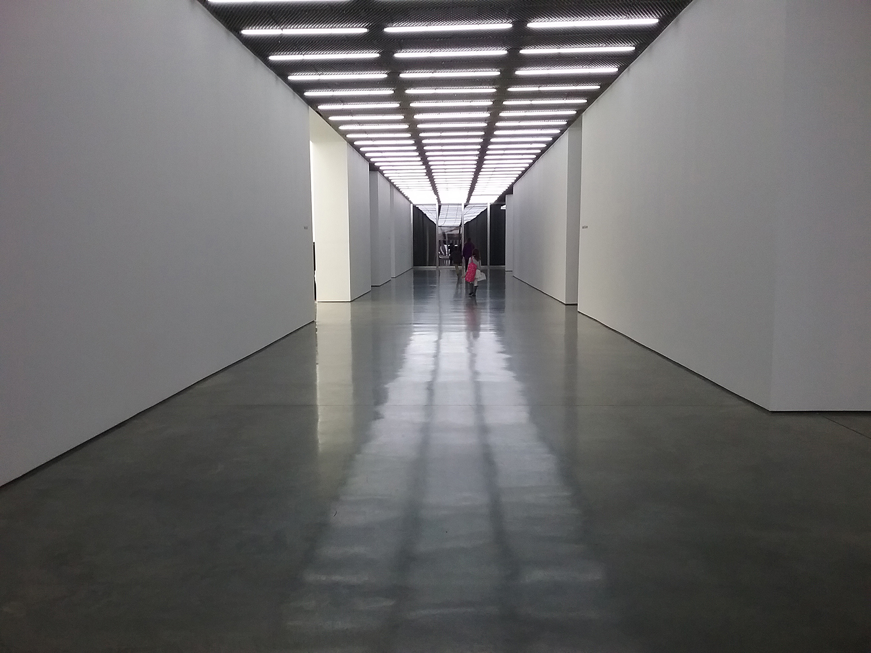 In the exhibition, Wyn Evans presented some big pieces, strongly sculptural and full of energy, but I was captivated by a minimal intervention in the building, an alteration in one of the fluorescents on the ceiling. One of them was adapted to twinkle, communicating a message in Morse code. The lost message was easily misunderstood as an error in the light system. This small poetic act strengthened the capacity of value for flying from object to architecture, and, why not? people, in an infinite horizontal reticula.
