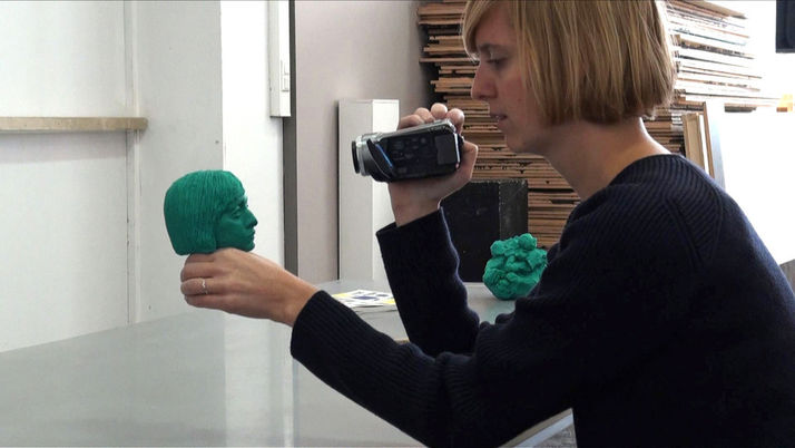 Likewise, in the video work Color and Shapes, a Short Explanation of my Artistic Practice (2010), the camera focuses on a series of generic three-dimensional shapes modelled in clay: a cube, a pyramid, a sphere, a cone and a cylinder. Each represents a different character of approach in her artistic endeavour: where the cube is more cerebral and conceptually concerned, the sphere is more frivolous and spirited. The conversation that ensues between these characters is humorous due to their irreconcilability, and particularly evocative of the persevering doubt that seems to be the scarlet thread of Houben’s, and arguably most, artistic processes.