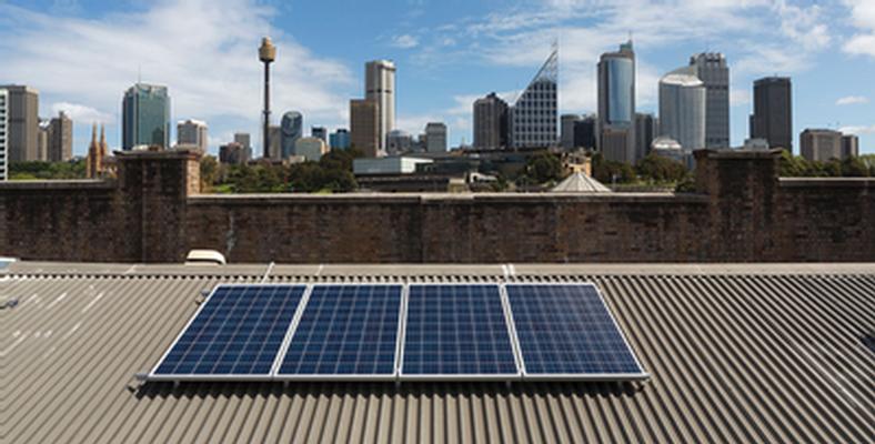 Nicholas Mangan, Ancient Lights. Installation view of off-grid solar power supply, Artspace, 2015.