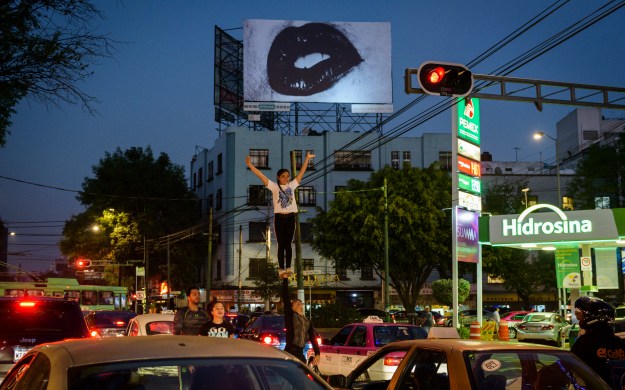 Now imagine you’re the aforementioned maid, working for a family living nearby in the affluent Condesa or Roma neighbourhoods. Your Catholicism is a integral part of your life, you go to church every Sunday and each night you say a prayer for your family. With your husband you’ve raised three boys and the first is about to begin university. Each day you walk that yappy dog around the park and pause to take a couple moments for yourself. One day, raised four stories above the street, a giant pair of full bodied lips are suggestively parted, positioned against the sky. Though the image is black and white, it’s clear that they’re painted with thick red lipstick; a set of perfectly white teeth glistens. Billboards regularly use sexualised imagery to sell; the pressure to be attractive is omnipresent. Yet these lips aren’t couched in the usual capitalistic codes. These lips are purely erotic, a bold proclamation of the sexuality of youth and the city. It affronts, yet calls back to a time twenty years ago when you had the power to stop traffic.