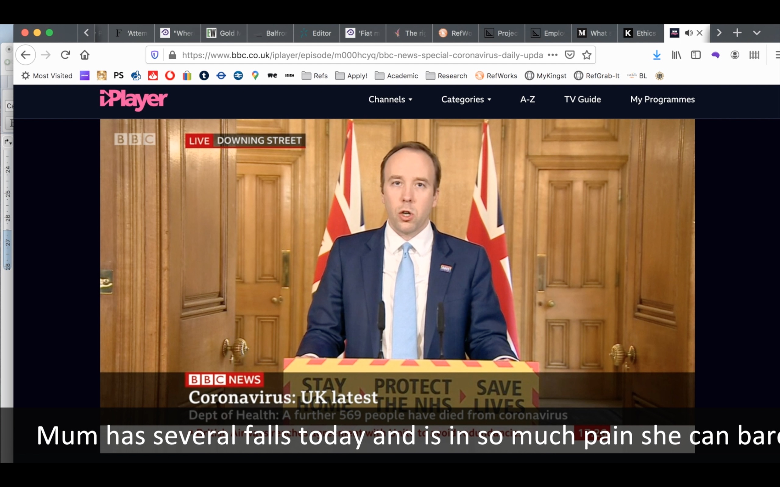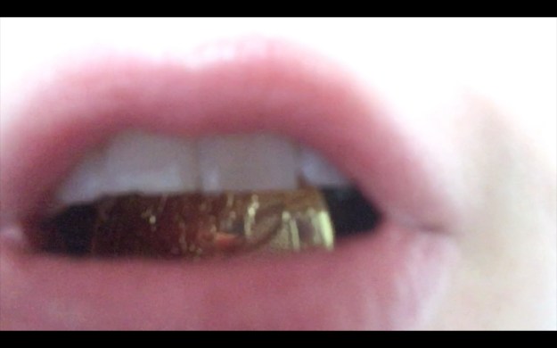 M: You have recently shown your latest work made during lockdown. New labour (2020) is a film that combines BBC footage of the daily coronavirus updates, subtitled with a personal narrative, with close-up shots of a mouth holding a gold coin while pronouncing motivational sentences. What brought you to develop this film?