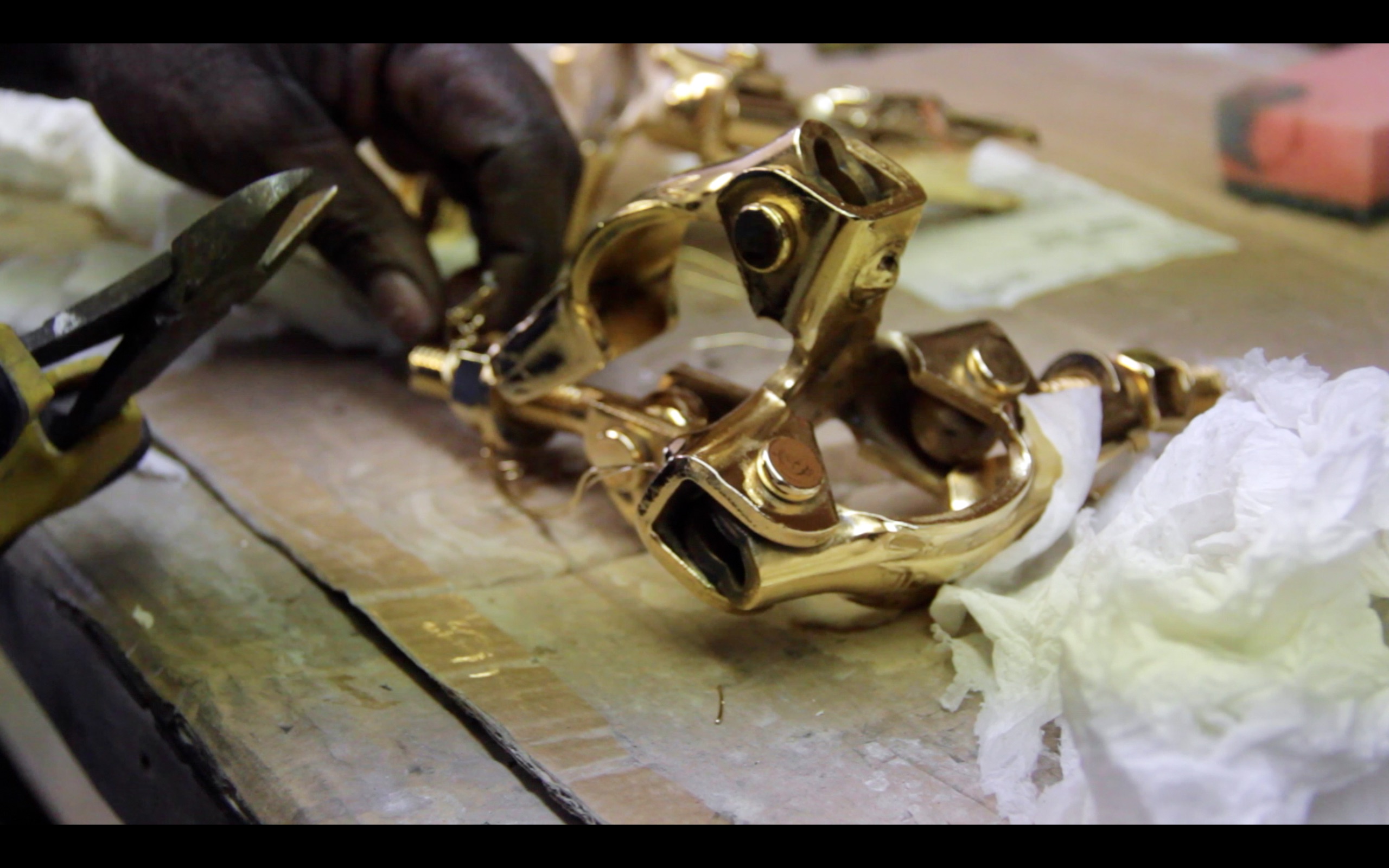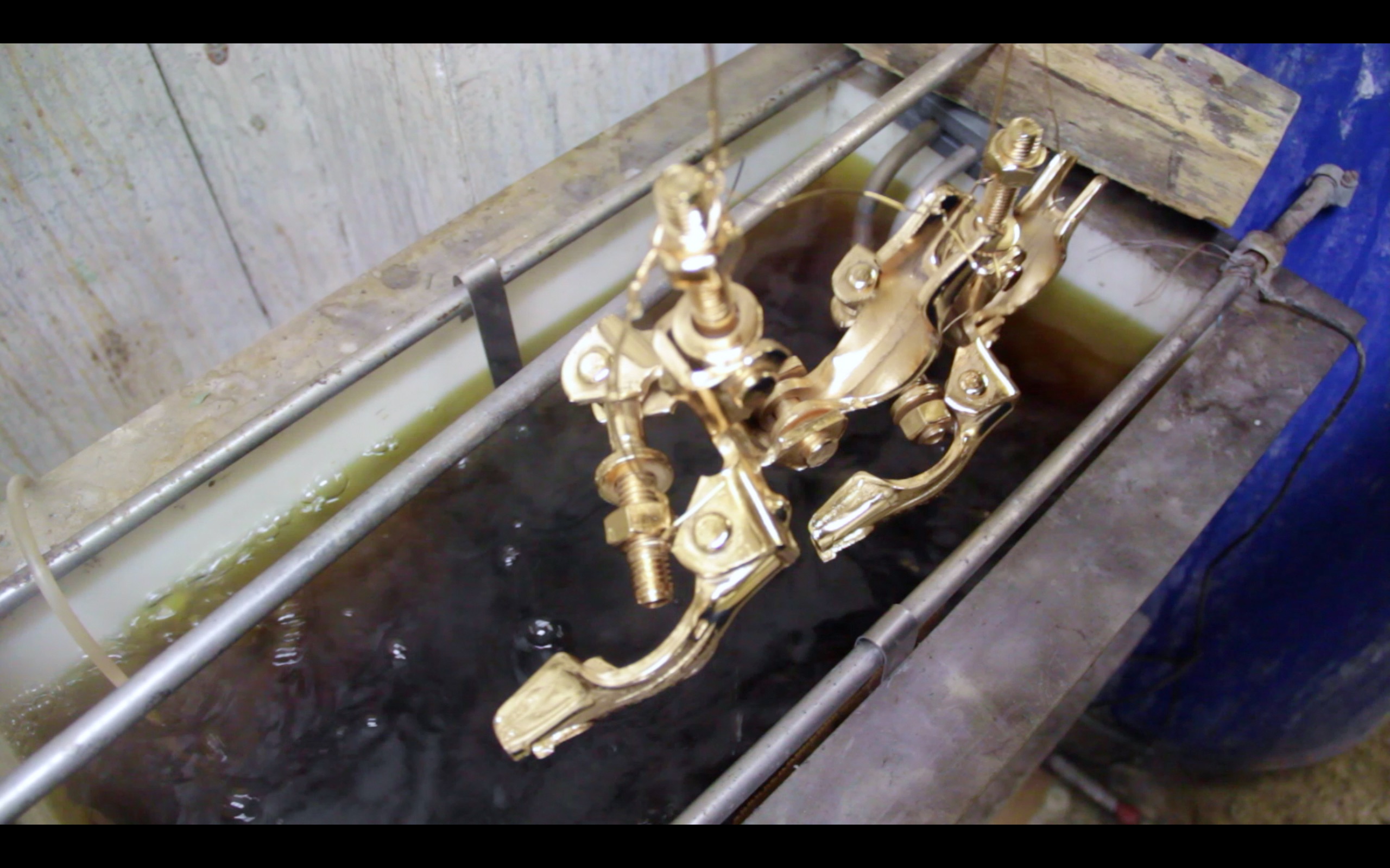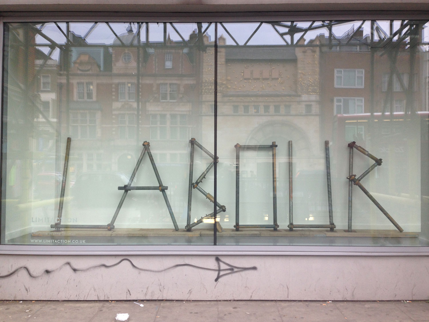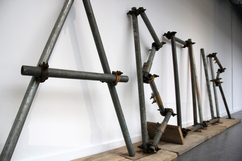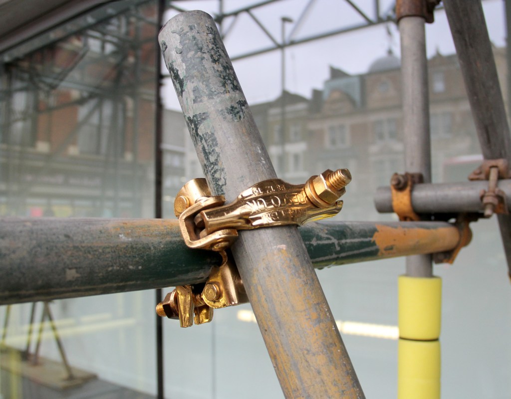 Questions about the value of labour, and specifically surrounding the idea that different types of labour have different values, were central to Working isn’t labour (2015). With the film of the scaffold joint being electroplated (separately titled The alchemists), and the inclusion of scaffold poles themselves into the installation, I was seeking to highlight the traditional, more industrial idea of labour – of ‘an honest day’s work’. The use of gold, a precious commodity and ultimate symbol of value sought to underline this, whilst the inclusion of the word ‘labour’ was a provocation to consider the idea and assumptions of labour, that all is not what it seems. That work and labour are not the same thing. And of course, the title of the work played on the slogan from Saatchi & Saatchi’s infamous billboard campaign for the Tories in 1978-79 – a nod to the general election that was taking place the day the show opened (7th May 2015).